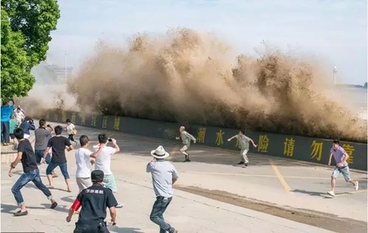潮水特点:“一线潮”、“回头潮”、“冲天潮”