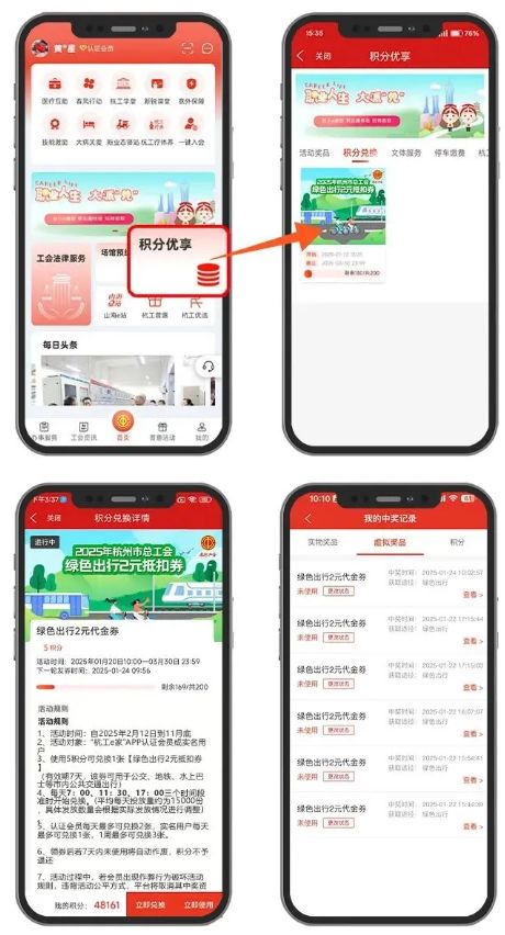 (1)使用5积分可兑换1张【绿色出行2元抵扣券】(有效期7天,该券可用于公交、地铁、水上巴士等市内公共交通出行,城际路线不可使用该券)。