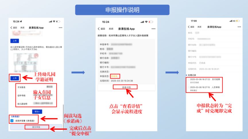 一般申报人提交申请后,符合条件的,补助将于7月直达市民卡账户。若条件不符,系统会驳回申请,兑现将失败,申报人可根据驳回原因提示重新提交申请。一般驳回原因为“人才申报人社保缴纳地非萧山区”、“申报人人才证明存疑”、“申报人或配偶为行政、事业编制人员”、“在园子女学籍异常”等。