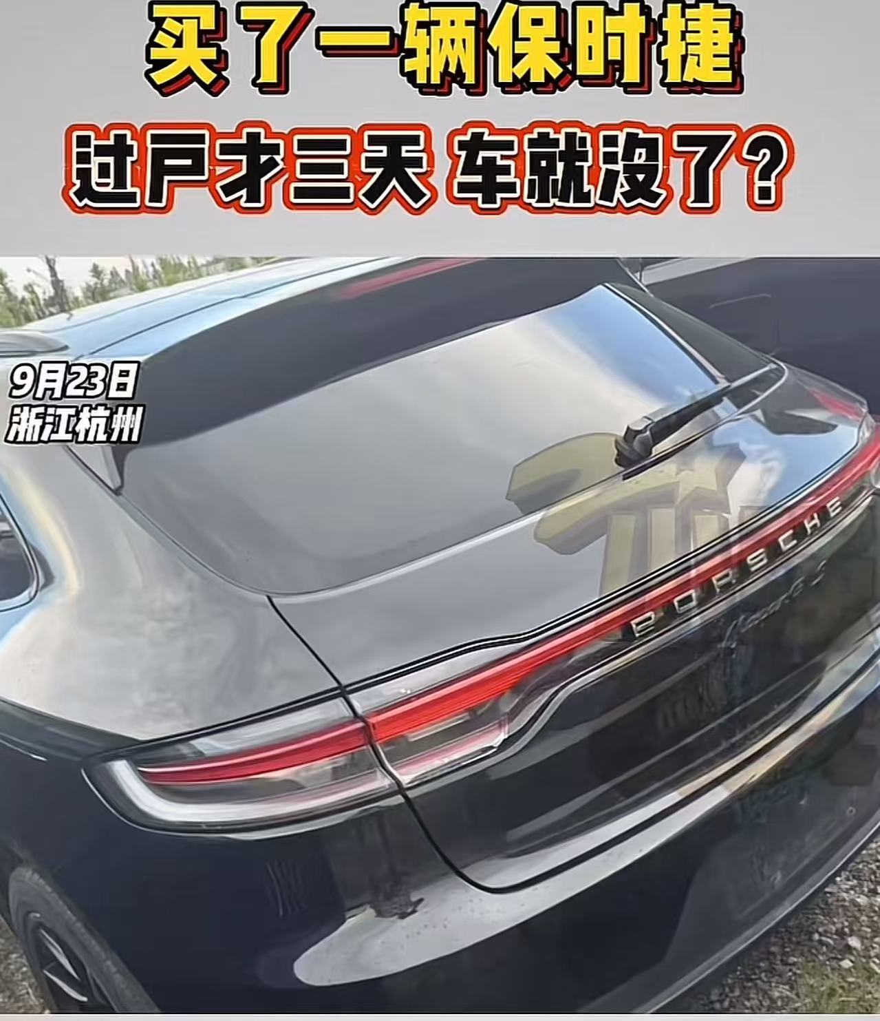 浙江杭州,男子花198000买了一辆二手保时捷,结果过户才三天,车子就没了!男子:“车子在我名下,他们把车开走,难道不是盗窃吗?”网友:贪慕虚荣惹的祸!有这钱还不如买一辆新车!