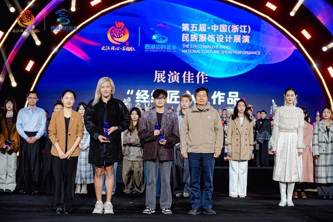 第五届中国(浙江)民族服饰设计展演晚会将活动推向高潮。三个篇章“春耕秋实”“田垄弦歌”“生生不息”以“织迹·土生万物”“织韵·山水共鸣”“织梦·华裳同心”为主题,通过现代设计语言重构服饰基因,既保留了中华传统纹样的精髓,又融入了当代审美元素。特别秀场“中华民族大团结”环节,贵州村T团队与莪山团队联袂演绎,手持农具、特产等生活化道具,生动诠释了“各民族像石榴籽一样紧紧抱在一起”的深刻内涵。