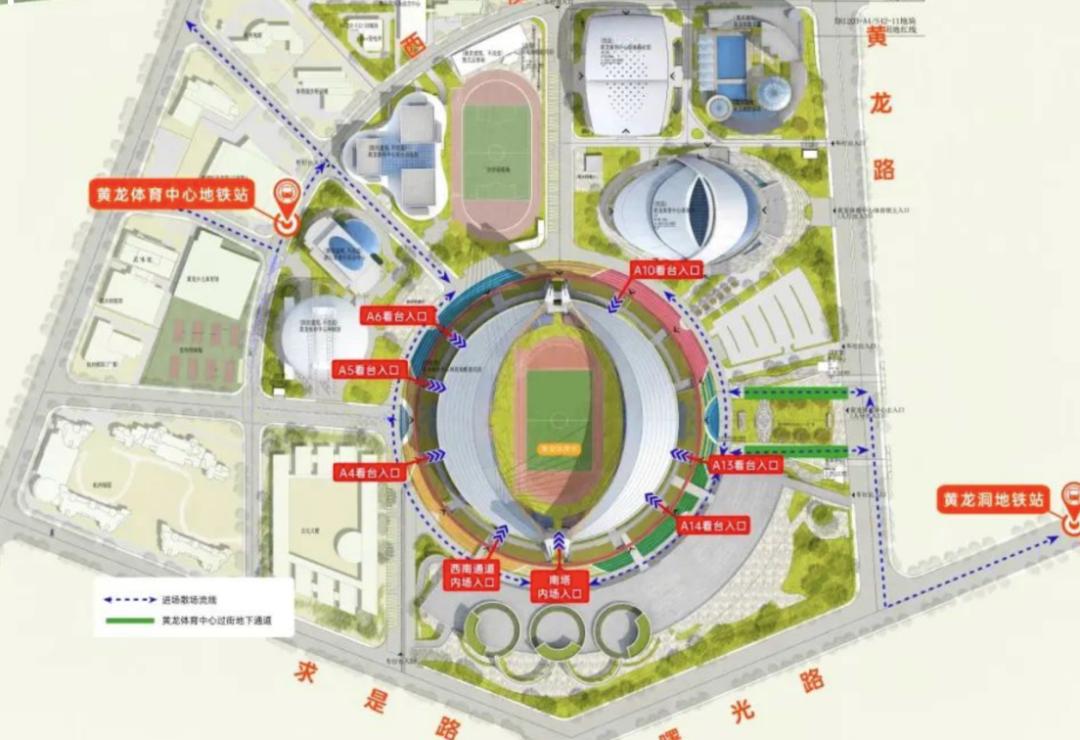 请前往黄龙体育中心参加活动的市民朋友尽量选择地铁、公交出行,请广大交通参与者按照现场民警、管理人员指挥和交通标志指示通行。